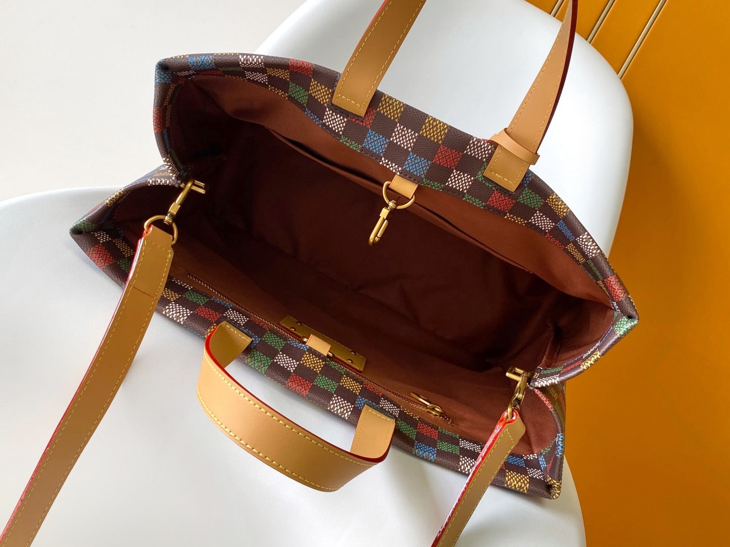 - Multicolor Damier Ebene coated canvas